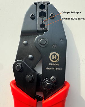 Ratchet Crimp Tool for crimping RG58/RG59 RF Connectors.