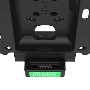 - Spring-loaded vehicle dock featuring GDS® Technology™ for data and charging capabilities with USB Type-C