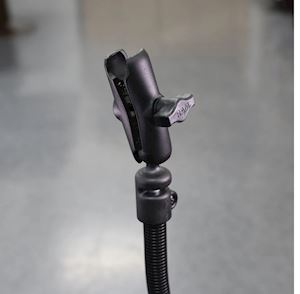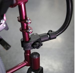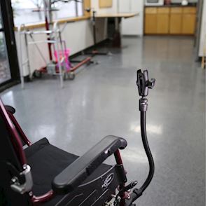 This kit includes a small RAM® Tough-Claw™ clamp base connected to an 18” RAM® Flex-Rod™ and medium double socket arm. The RAM® Tough-Claw™ can be clamped to 0.625" - 1.14" diameter rails. Designed for use with popular wheelchair brands, clamp the RAM® Tough-Claw™ in place and pair with your preferred B size device holder.