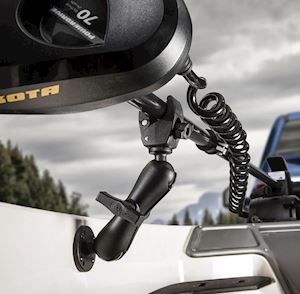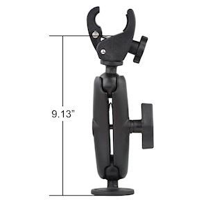 Ideal for stabilizing trolling motors, the RAP-400-202U consists of the small RAM® Tough-Claw™ base, C size medium length double socket arm, and round base adapter. The RAM® Tough-Claw™ is the perfect mounting base for quick and easy tool-less installation and removal on round, square, odd shaped rails, and bars. The RAM® Tough-Claw™ can be clamped on rails from 0.625" - 1.14" outer diameter. The round base adapter contains the industry standard universal AMPS hole pattern. This mount is designed with RAM® C size 1.5" diameter patented ball and socket system that has adjustment points at both ends of the double socket arm, allowing for almost infinite adjustment and perfect viewing angles.