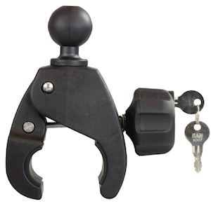 The RAM Locking Tough-Claw™ is the perfect mounting base for quick and easy installation and removal on round, square, odd shaped rails and bars. The Tough-Claw™ can be clamped on rails from insert clamping range here in outer diameter. Ideal for mounting tablets, action cameras, smartphones, rod holders and much more in virtually any environment, the Tough-Claw™ is a versatile solution for when a bit more grip is required. The 1.5” ball supports larger devices and offers greater mounting flexibility. Perfectly suited for mounting on the yoke of an aircraft, handlebars and seat posts of bicycles, kayak rails, roll bars and much more, the RAM® Tough-Claw™ will soon become another essential RAM® component in your collection of mounting options. The locking knob includes a 1/4”-20 thread and allows you to disengage the screwing of the knob. Once you have set your Tough-Claw™ in the location you need, you can lock it in place for peace of mind and tamper resistance.