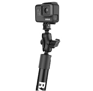 Get the perfect shot from your action camera when you're out on the water with the Tough-Pole™. This kit consists of a RAM combination bulkhead/flat surface base with post, 4" PVC pipe connected to a 12" PVC pipe with a C size short double socket arm, and a B size short double socket arm at the top that adapts to the universal action camera adapter. The various ball and socket components allow you to adjust your mount at virtually any angle, and offer the ability to collapse and stow away when not in use. Any action camera with a two-pronged attachment (including GoPro®) will work with the action camera adapter.
