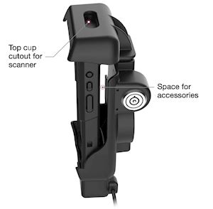 The RAM® Locking Powered Dock + USB-A for Honeywell CT40/45/47 (RAM-HOL-HON12PDLU) is a spring-loaded, form-fit powered dock that allows workers to secure and charge their Honeywell device. Power to the device is delivered via a 1m long female 5.5mm DC barrel connector and supports a single peripheral device via USB-A female connector. This dock includes an integrated stylus holder that snaps your stylus into place while not in use and is designed to accommodate OEM accessories, such as the hand strap. The top cup of the holder features a cut-out, so workers can utilize the device's scanner while docked. This holder comes with optional inserts to support devices with or without the protective rubber boot. The key lock provides theft deterrence and extra security for peace of mind in high-traffic areas. Complete your solution by adding a compatible RAM® two-hole AMPS pattern diamond base and double ball mount, allowing for a wide variety of mounting options (hardware included).
