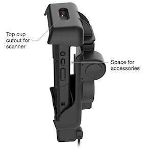 The RAM® Powered Dock + USB-A for Honeywell CT40/45/47 (RAM-HOL-HON12PDU) is a spring-loaded, form-fit powered dock that allows workers to secure and charge their Honeywell device. Power to the device is delivered via a 1m long female 5.5mm DC barrel connector and supports a single peripheral device via USB-A female connector. This dock includes an integrated stylus holder that snaps your stylus into place while not in use and is designed to accommodate OEM accessories, such as the hand strap. The top cup of the holder features a cut-out, so workers can utilize the device's scanner while docked. This holder comes with optional inserts to support devices with or without the protective rubber boot. Complete your solution by adding a compatible RAM® two-hole AMPS pattern diamond base and double ball mount, allowing for a wide variety of mounting options (hardware included).