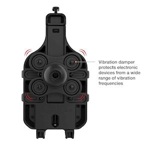 - Spring-loaded holder features adjustable side supports overmolded with a soft rubber and integration vibration damper; easily insert and remove your phone with one hand