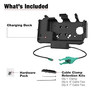 The RAM® USB-C Modular Dock + USB-C & USB-A Data for Samsung Tab Active5 & Tab Active3 (RAM-HOL-SAM60CPN-CAU) was thoughtfully designed to meet the demands of commercial truck drivers, field service technicians, pupil transporters, logistics managers, forklift operators, and more. Power and data sync capabilities are provided to the device through GDS® pogo pins while taking advantage of this cradle's dual USB Type-C and USB Type-A pigtail to support up to two additional peripheral devices, making this the ideal, compact mounting solution for your mobile workstation. This modular dock is compatible with the RAM® Skin™ or factory device skin along with most RAM® accessories including: Temperature Control Accessories, RAM® NFC Extender, and side bracket accessory attachments. Modular docks are not compatible with the GDS® Hand-Stand™ but are compatible with the GDS® Roto-Mag™. Access to the stylus remains while the device is docked. Included is a set of four nuts and bolts to connect the dock to any RAM® components containing the universal AMPS hole pattern along with cable clamps and zip ties for cable retention.