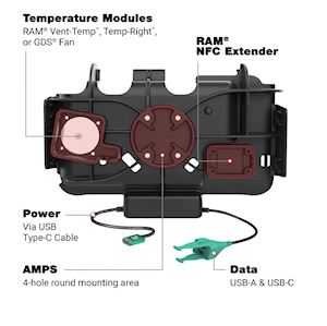 - Compatible with most RAM® dock accessories including Temperature Control Accessories, RAM® NFC Extender, GDS® Roto-Mag™, and side accessory attachments
