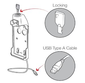 The RAM® EZ-Roll'r™ Powered Key Locking Cradle for Sonim XP5s secures your device in a form-fit holder while keeping the entire screen and buttons visible and accessible. This powered cradle features two integrated pogo pins that provide charging capabilities to the device through male USB Type-A connector, and includes key lock for extra security and peace of mind. Single-handed operation makes it easy to dock and remove the Sonim XP5s—simply lift the top lever and pull out the device, or place bottom portion of the device in first and push in to lock in place. Compatible with RAM® two-hole AMPS pattern bases and RAM® microphone brackets, this RAM® form-fit cradle easily connects to B and C size ball mounts for use in a wide variety of applications.