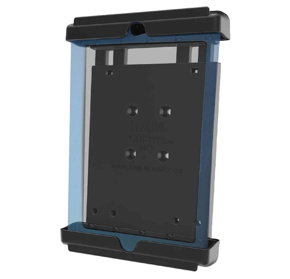 The RAM-HOL-TAB16U consists of a spring loaded back plate and custom support cups for the Google Nexus 7 WITH HEAVY DUTY CASE. The spring loaded design makes it easy to load and unload your tablet, along with keeping it secure while on the go. Interchangeable cup ends are designed to optimize the functionality of your tablet, allowing access to audio jacks, usb, power, and other ports, your tablet can be used just as it was intended. Perfect for stationary or on the go applications, the RAM-HOL-TAB16U is just what you need to get the most out of your tablet. Included is a set of four nuts and bolts to connect the cradle to any RAM components or mounts that contain the universal AMPs hole pattern. For off-road environments and extreme use, we recommended the use of a tether to assist in retaining your device. The Tab-Tite™ cradle is compatible with any tablet that will fit the dimensions listed below. It is important to verify the dimensions of your tablet when determining the overall size.