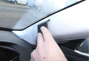 3. Press the ProClip upward/forward so the angled upper edge hooks around the A-post.