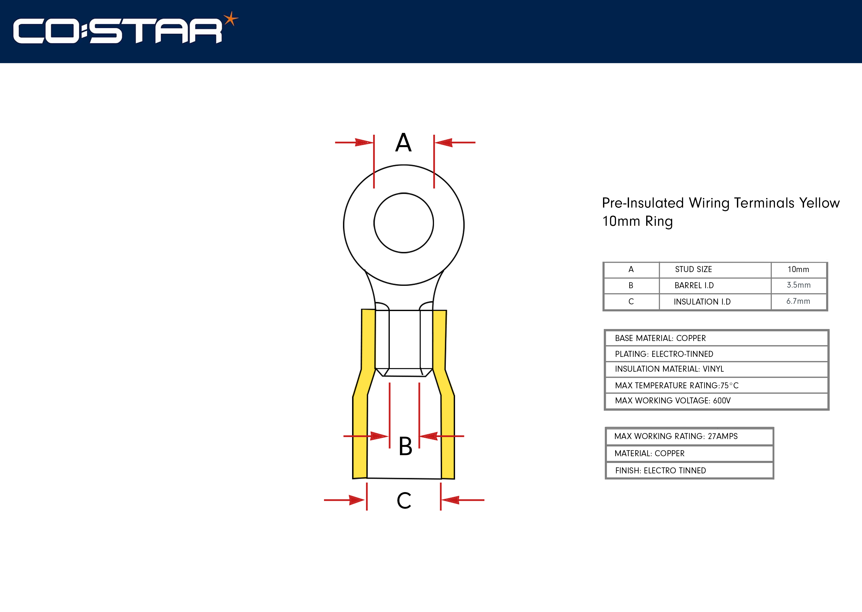 10.0mm Ring Terminal - Yellow