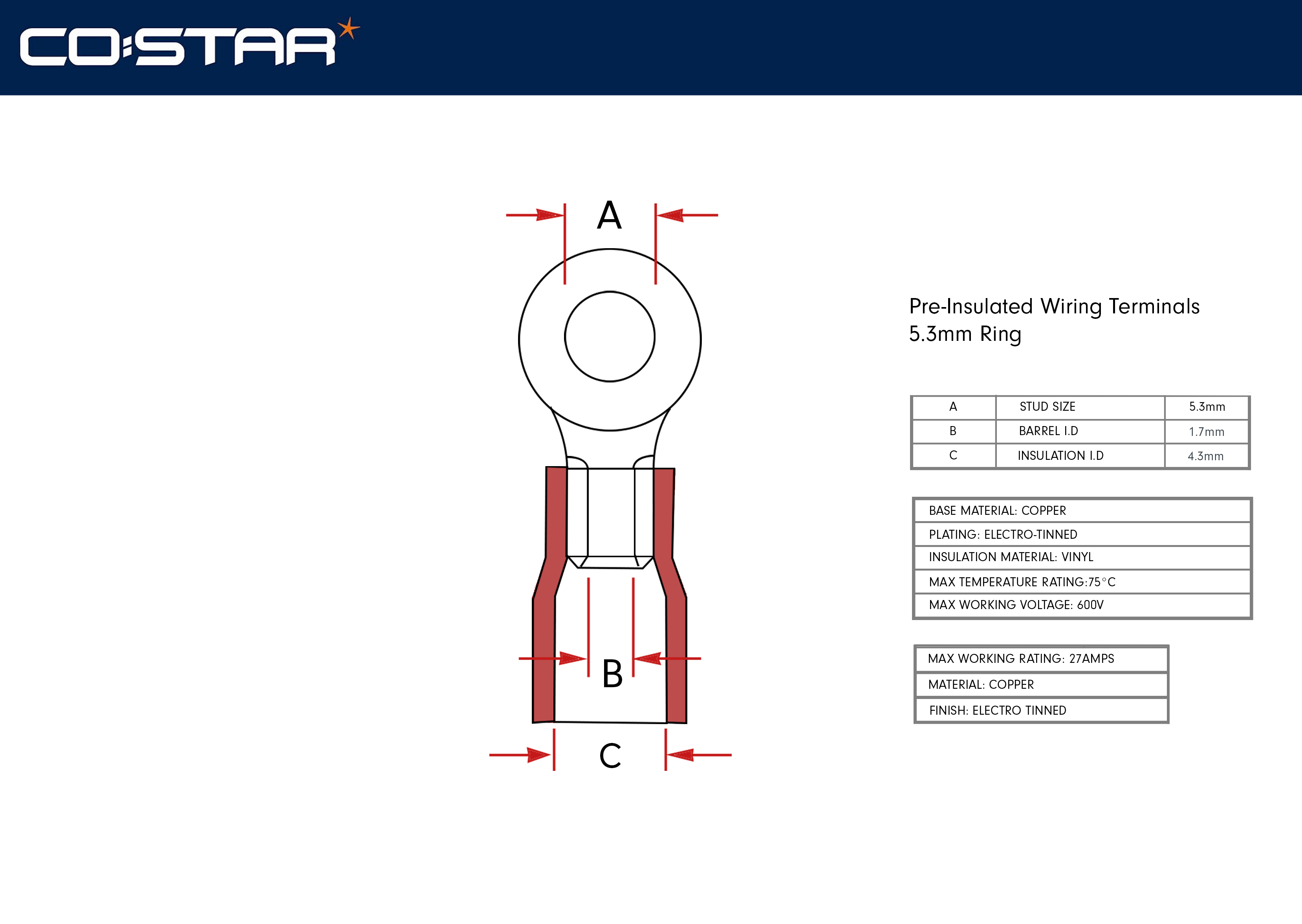 Our pre‑insulated 5.3 mm red ring terminals provide secure, vibration‑resistant electrical connections for automotive, industrial, and general wiring applications. Supplied in packs of 100, these terminals deliver consistent quality and dependable performance for technicians who need reliability at scale.